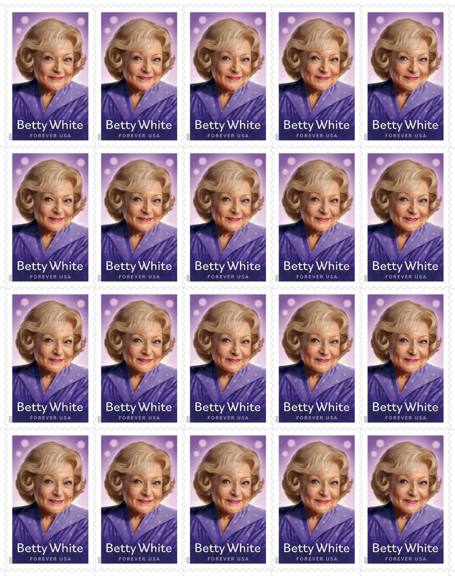 The United States Postal Service honors TV icon Betty White with a Forever Stamp featuring her portrait against a violet background. Celebrating her 80+ year career, iconic sitcoms, and animal advocacy, this stamp captures the spirit and sparkle of one of America's most beloved stars.